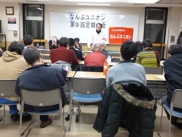 2月2日なんぶユニオン第9回定期大会がおこなわれました。人事体制を強化し、今年の活動方針を決め、気持ちを新たに出発しました。活動方針として1,「外注化粉砕、非正規職撤廃」で安倍政権打倒し、11月集会1万人結集をかちとろう 2,組合員拡大で「なんぶ青年部建設をめざそう 3,反原発闘争の強化 を決定しました。なんぶユニオン組合員全体の団結で今年も闘うことを確認し、青年組合員の団結ガンバロウで終わりました。