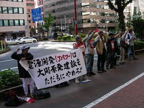 2013年2月14日、大間原子力発電所建設再開中止を求める抗議にも関わらず、貴社は建設再開を止めようとしないことに対して強く抗議し、再度大間原子力発電所建設の中止を求めます。