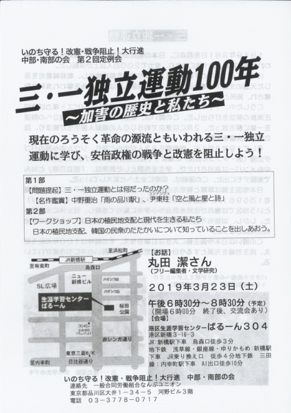 一般合同労働組合 なんぶユニオン 〒140-0014 品川区 大井1-34-5 河野ビル3F Tel&Fax: 03-3778-0717