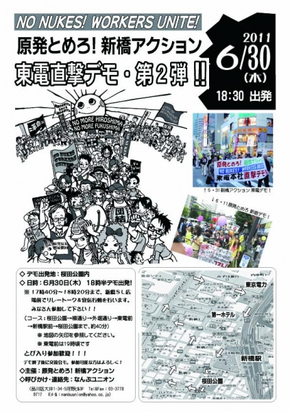 最近は、1万、2万の巨大デモも当たり前になってきたが、これからは単一労組・単一集団の手作りデモが、毎日のように都内のどこかで行われるようになるのではなかろうか、そんな予感を抱かせる「原発止めろ!新橋アクション 東電本社直撃デモ!!」であった。