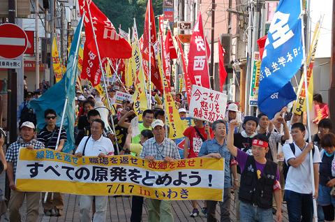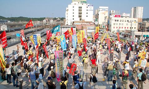 “線路を返せ! 職場を返せ! 故郷を返せ!”――。労働組合旗を林立させた戦闘的な大デモが、いわきの街を揺るがしました。動労水戸が呼びかけた「すべての原発を止めよう!7・17いわき集会&デモ」が7月17日、380人の結集で打ち抜かれ、なんぶユニオンも決起しました。