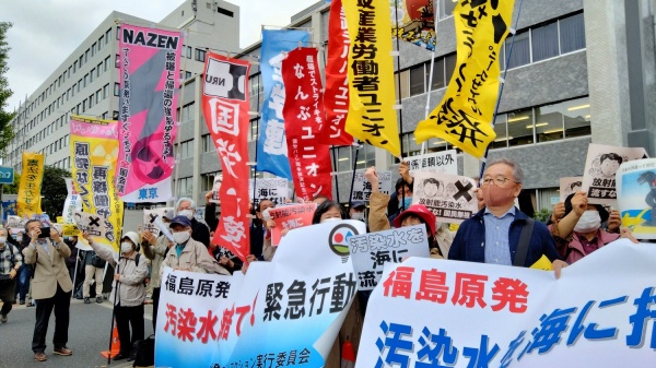 参加者らは「世界の海を汚染する放射能水の放出反対」や「海は放射能水を捨てるための場所なのか?」などと書かれたプラカードを手にシュプレヒコールを上げた。