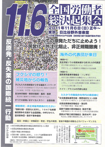 11.6反原発・反失業集会全国労働者総決起集会へ!