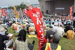 なんぶユニオンは、沖縄闘争に参加しました。「復帰」40年を迎えた沖縄は40年前以上に基地が強化され、沖縄人民は、「振興策」が沖縄人民にとって何の意味もないものだということを見抜いています。特に今年は、福島と沖縄が結びつき、「労働者は死んではならない。死すべきは基地と原発と資本」であるという福島と沖縄の連帯の絆が固く結びつき集会とデモが熱気に満ちておこなわれました。最後の名護市内デモは、北部合同庁舎から手を振る労働者、郵便労働者からも「頑張って!」の声。沿道のオバ-はそれを見て、満面の笑み。感動的光景が見られました。うるまユニオンの富田晋さんが、「原発を止めることも、基地を止めることも可能なんだと沖縄は僕らに教えてくれた。この確信を職場、学園、地域に持って帰り、この社会を変えよう」と絞めくくってこの闘争は終わりました。