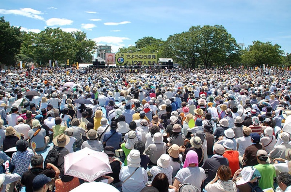7月16日,強力な日差しの中、代々木公園一帯は、17万人の「再稼働反対」の一つの意志で埋めつくされた。全国から駆けつけた労働組合や団体の旗、のぼりが翻った。又、老若男女、家族連れ、あらゆる層が集まった。そして呼びかけ人の全員が、怒りを表明した。特に、大飯原発のある福井からも発言があった。福島からは武藤類子さんが、発言。「福島の現状はあまりにも厳しい。4号基、甲状腺検査、再稼働、がれき問題、安全保障、廃墟と復興のはざまで、ひっそりと絶たれていく命たち。絶望こそが希望であるということばがありますが、福島事故という最悪の事態の中からひそかな光をたぐりよせ、今このように青空のもとに集まっています。共に歩んでいきましょう。」と呼びかけた。